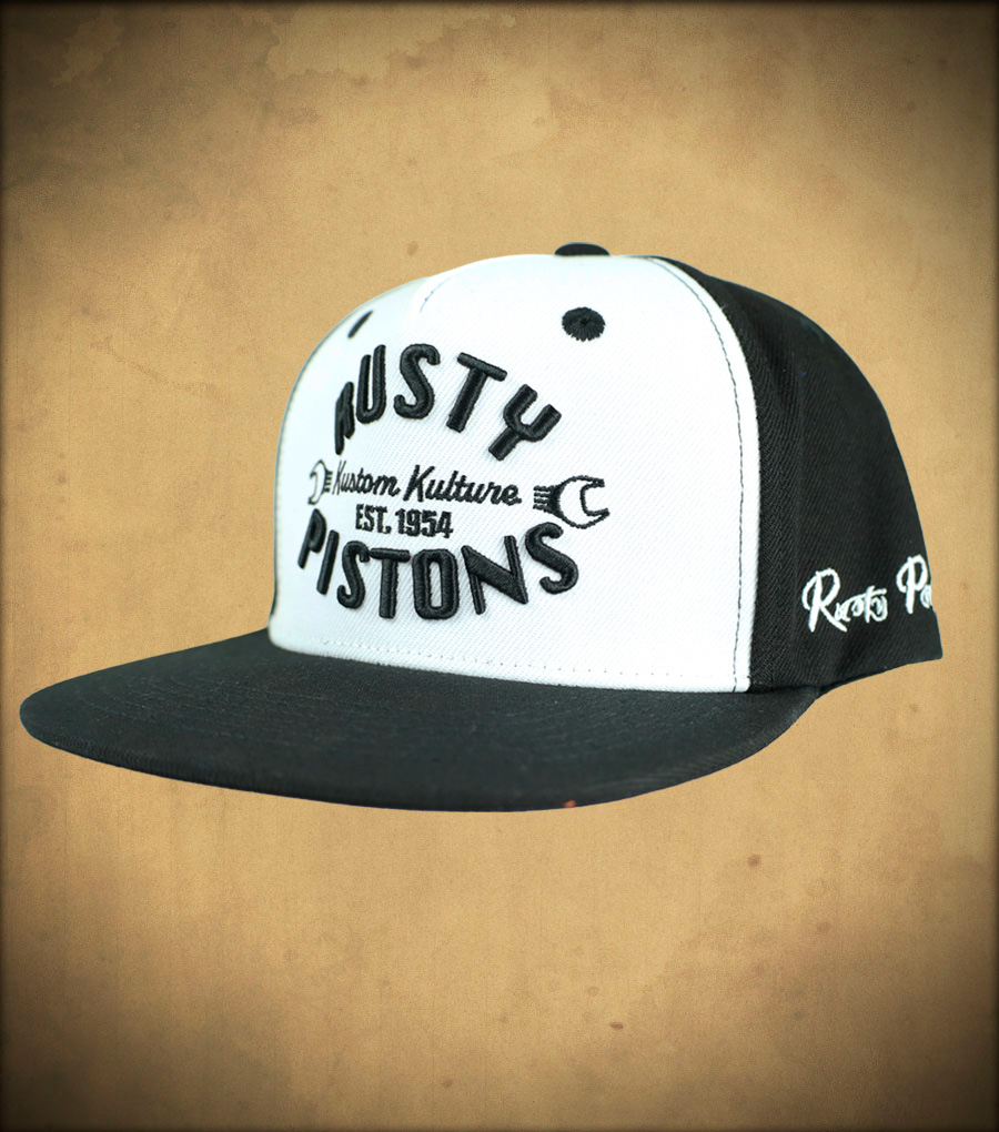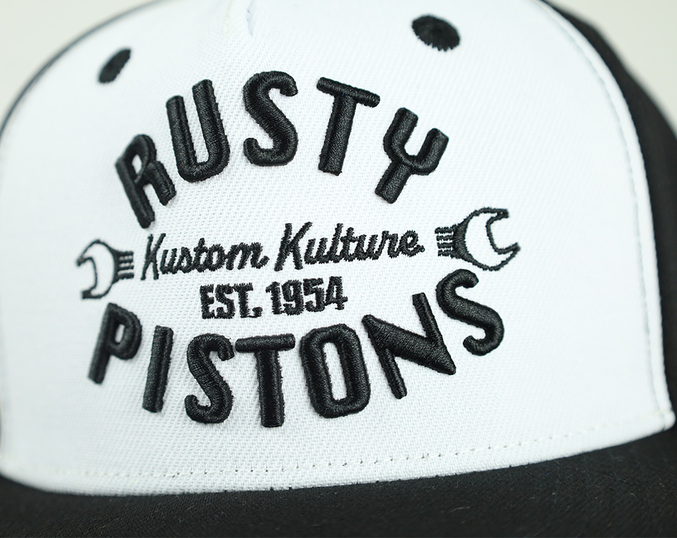 Cap from Rusty Pistons with a flat visor and bold embroidered logo. Thanks to the adjustable closure at the back, it fits most head sizes and is perfect for everyday wear.