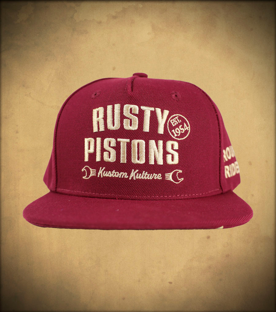 Cap from Rusty Pistons with a flat visor and bold embroidered logo. Thanks to the adjustable closure at the back, it fits most head sizes and is perfect for everyday wear.