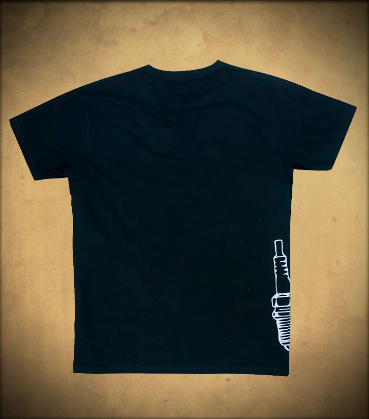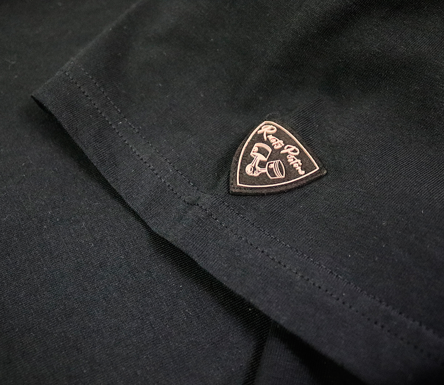 - 3D round Rusty Pistons logo on the back