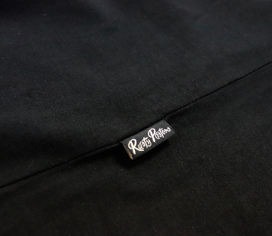 - Rusty Pistons logo applique on the side seam