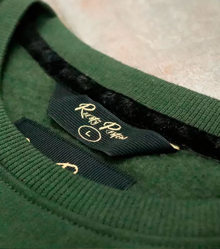 • smooth velvet custom RP ribbon over shoulder and neck seams