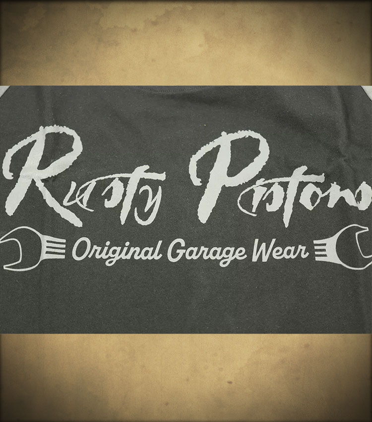 - 3D round Rusty Pistons logo on the back