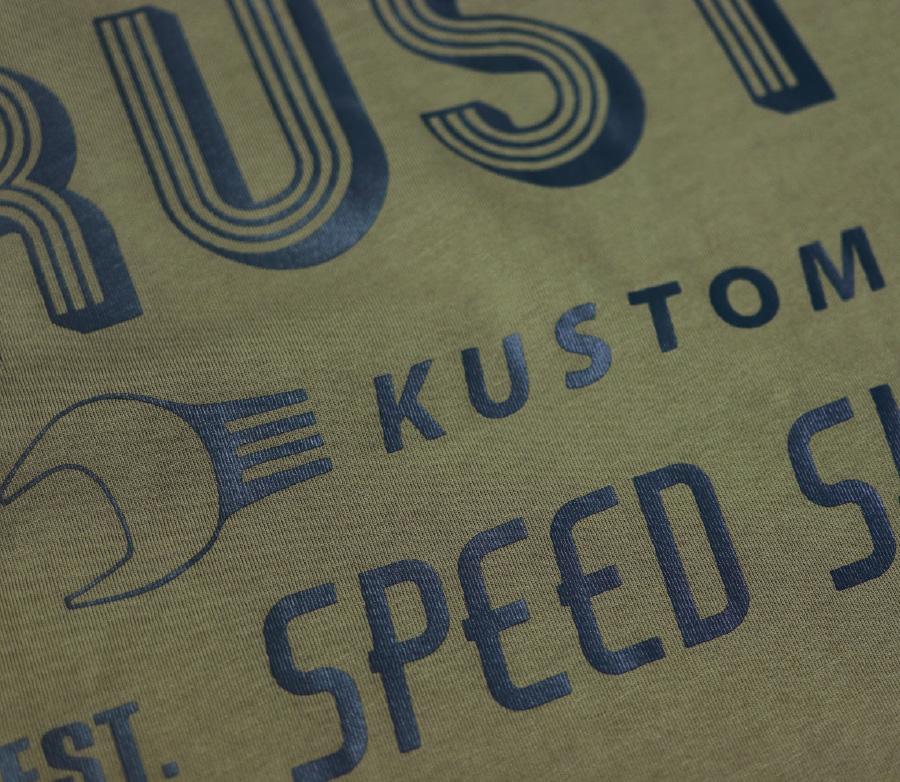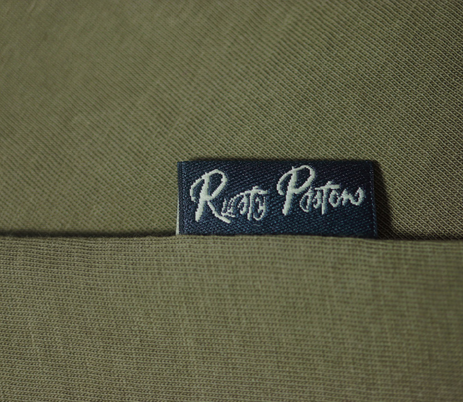 • Rusty Pistons logo woven label on side seam