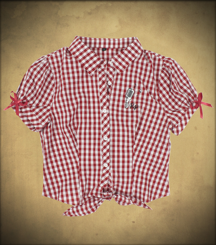 - material: 100% Cotton- women´s crop checkered t-shirt adjustable at waist- direct embroidery in front and back- small ribbon on arms